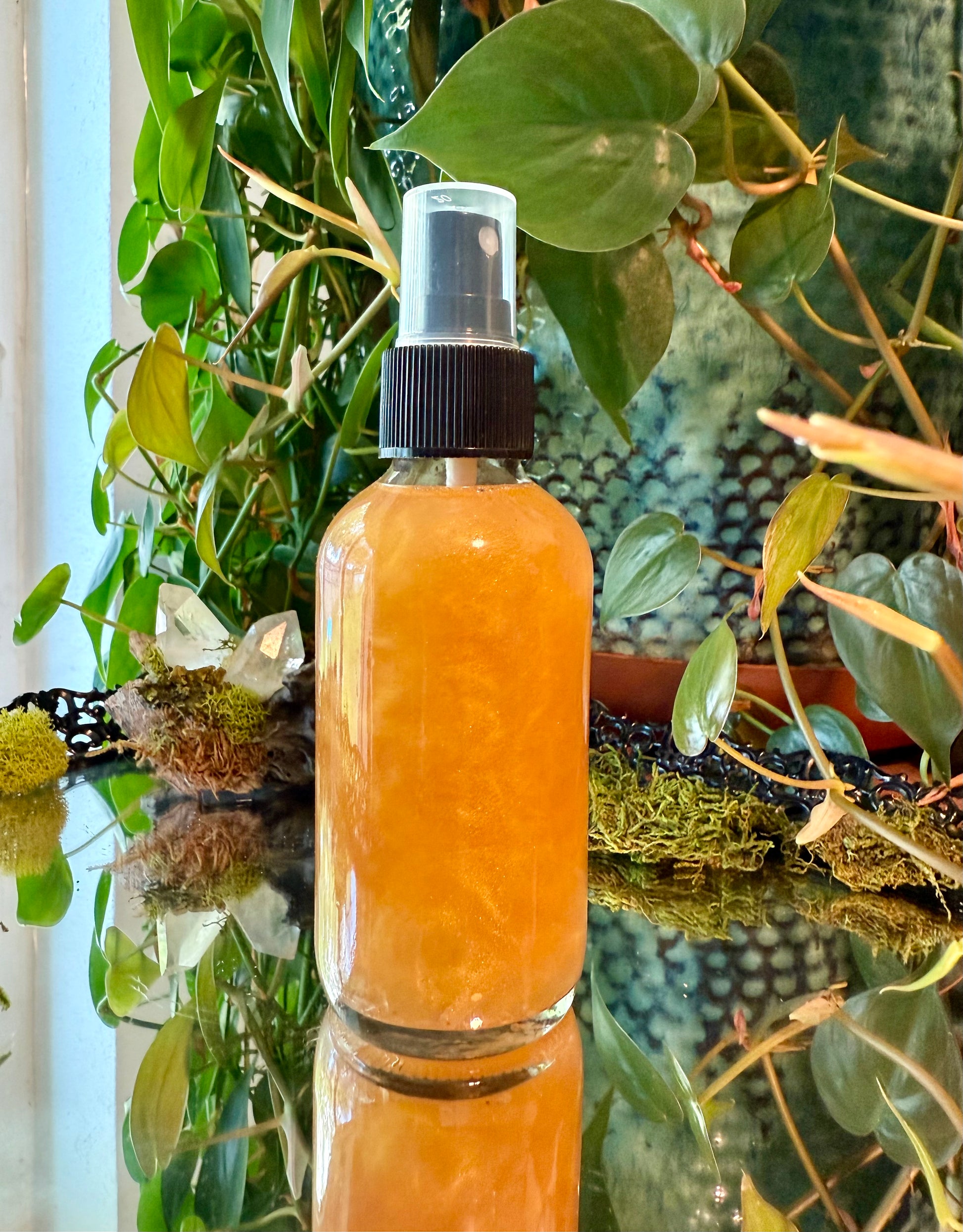 Raise your vibration and infuse your space with light and positivity. This uplifting spray is crafted with moon-charged water, purifying botanicals, and crystal energy to refresh your aura, brighten your environment, and invite joy into every moment.
