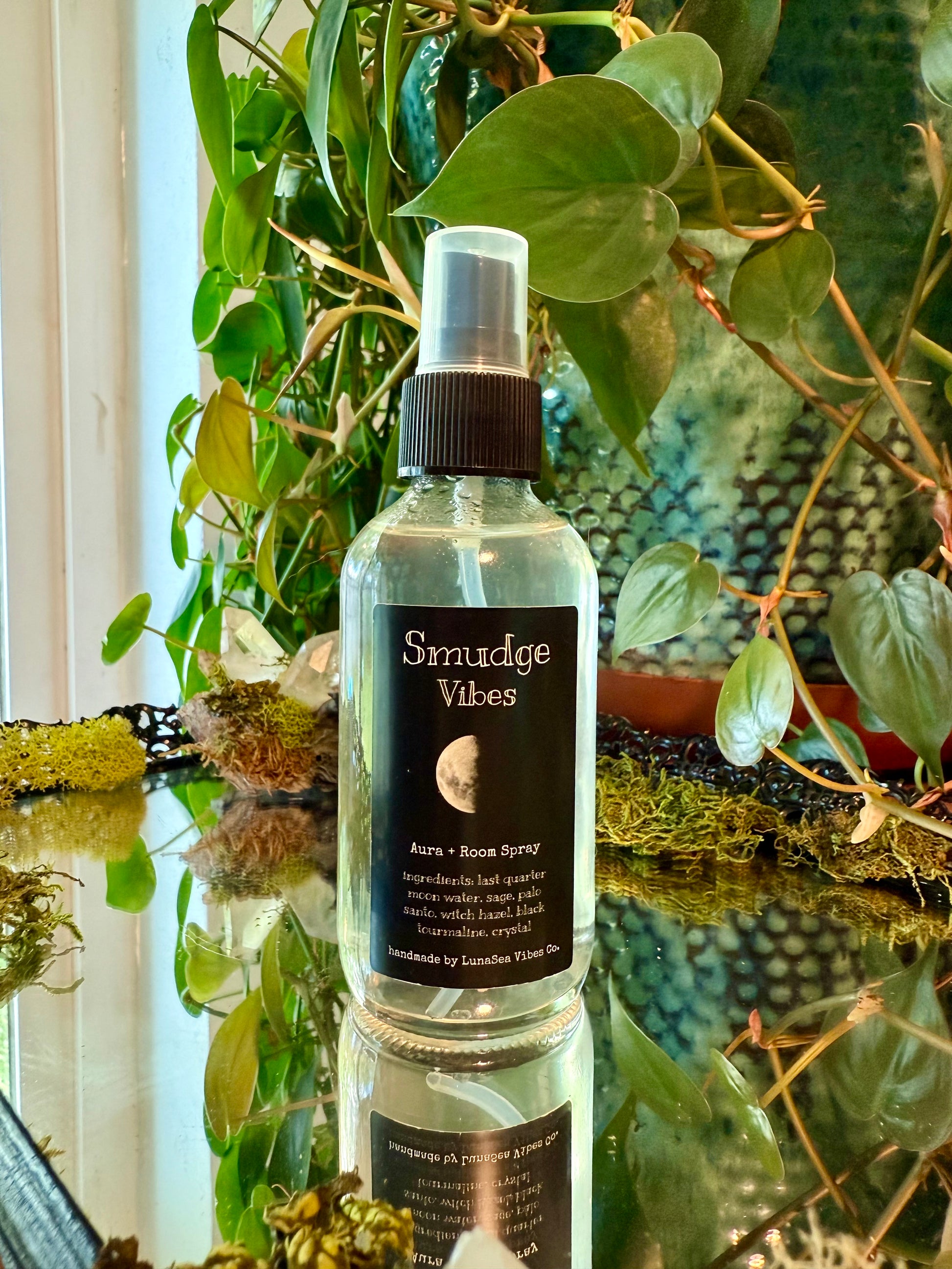 Clear away stagnant energy and invite in harmony with this sacred cleansing spray. Crafted as a smoke-free alternative to traditional smudging, it combines moon-charged water, sacred botanicals, and protective crystals to purify both your space and spirit.