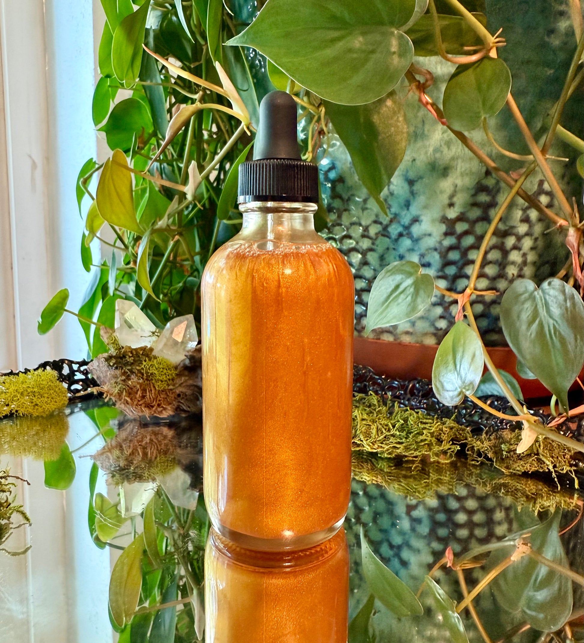 Ignite your inner radiance and embody the warmth of the sun with this luminous body and ritual oil. Blended with skin-loving botanicals, sacred oils, and crystal energy, each bottle is both sun- and moon-charged to balance fiery vitality with intuitive flow — empowering you to shine with confidence, joy, and divine harmony.